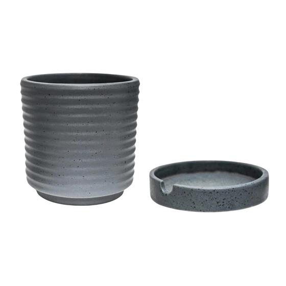 Luna Stoneware Planter And Saucer in Grey