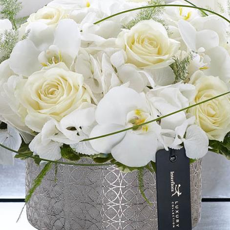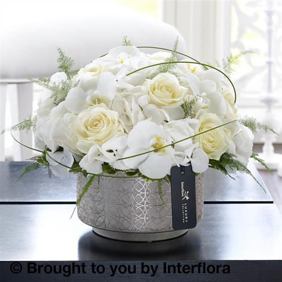 This exquisite arrangement of orchids, roses and hydrangea is simply breathtaking. By choosing the finest quality flowers in purest white tones, the natural beauty of each one really shines out. This is a truly stunning gift that will look sensational in their home.