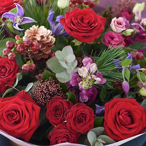 You can choose a style to make it just right for them too. Our classic style will feature blooms in plum and burgundy colours. You might also see reds and greens with highlights of soft pink and copper.