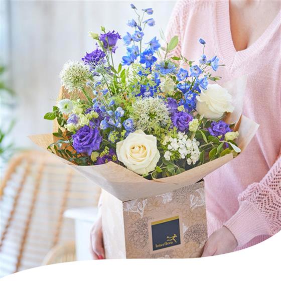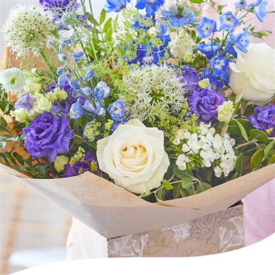 Indulge in the serene beauty of blue this month with our spectacular May Bouquet of the Month. This enchanting arrangement features a mesmerising mix of Delphiniums, Lisianthus, Sweet Williams, and other exquisite flowers that will undoubtedly elevate your space with a hint of holiday freshness.