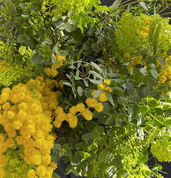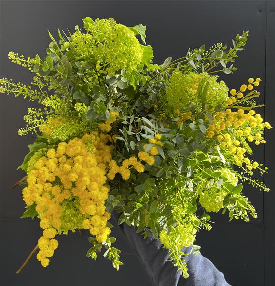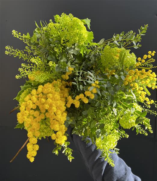 A beautiful fresh bouquet of yellow Mimosa which is available through spring.