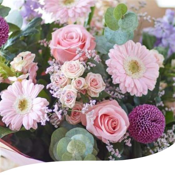 Prepare to delight her with soft, dreamy colours including pinks, lilacs, peaches and creams, accented with hints of cerise and green. It's the ultimate expression of love and appreciation for the special woman in your life.