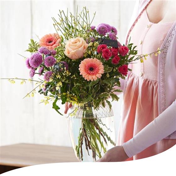Introducing our Mother's Day Vase - Graceful Hues, the perfect way to ensure Mum feels truly pampered this Mother's Day. With beautiful bright blooms elegantly arranged in a lovely vase, this gift is designed to bring joy and delight without Mum having to lift a finger.