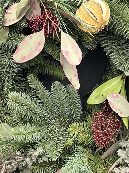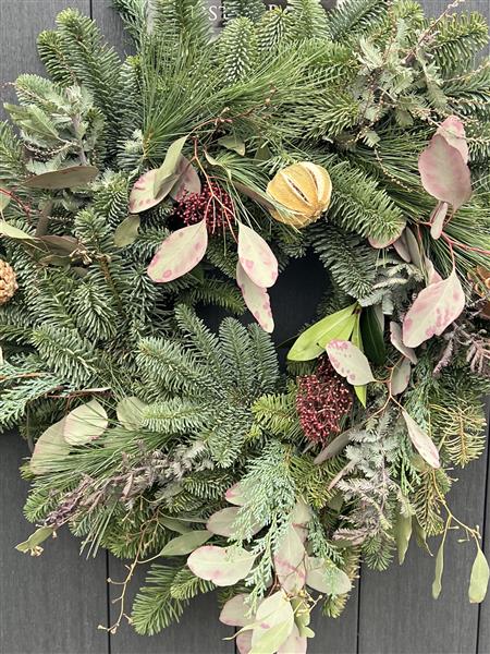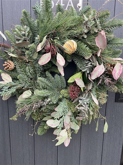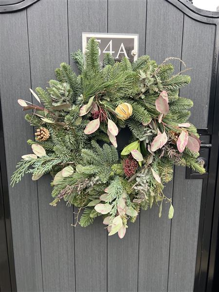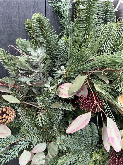 We used the popular red Skimmia which adds to the festive look and added on some blue conifers and Acacia.