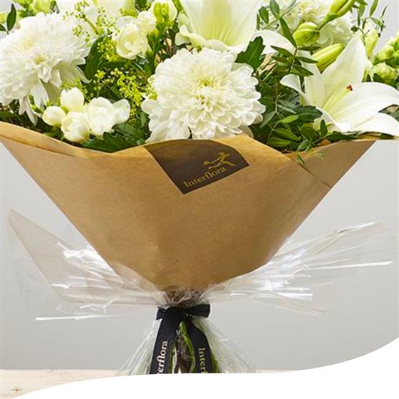 Our Opal Shimmer Bouquet arrives expertly arranged and elegantly wrapped, placed in water to guarantee its freshness.
