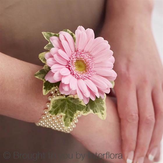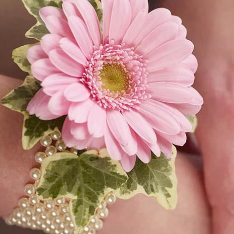 Pale Pink Germini & Pearl Wrist Corsage