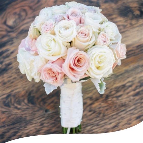 Make your special day even more memorable with our Pale Rose Cluster Bridal Bouquet. Featuring exquisitely arranged White, Cream and Pink normal and garden roses, this bouquet embodies grace and sophistication, adding a touch of elegance to your celebration. For an even greater impression, you can choose your Bridal Bouquet in either Medium, Deluxe and Luxury sizes.