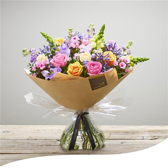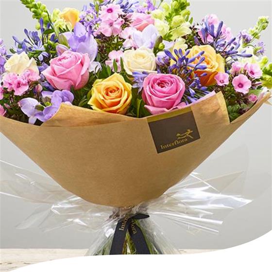 Indulge in the elegance of our Pastel Colours Bouquet, expertly crafted with Roses, Agapanthus, Freesias, Phlox, Stocks and Antirrhinums in soft pastel hues.This exquisite arrangement arrives aqua-packed and beautifully gift-wrapped, ensuring freshness and a stunning presentation from the moment it's received.