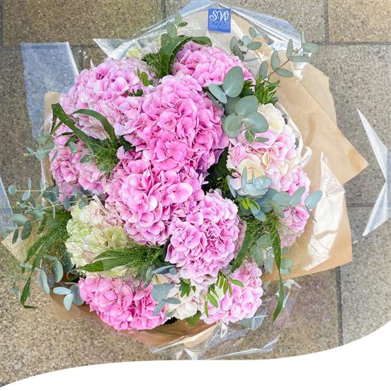 Introducing our beautiful Pink Hydrangea Bouquet - a delightful arrangement perfect for brightening up any space or occasion!