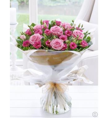 Indulge her passion for pink with this ultra feminine bouquet. We've chosen classic roses for their enduring beauty and delicate lisianthus for extra detail. The soft pink shades of both varieties look wonderful together and are sure to prompt a smile of pure pleasure.