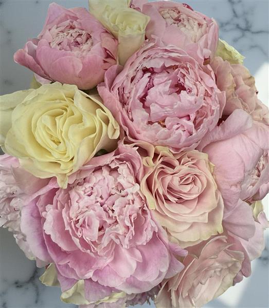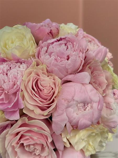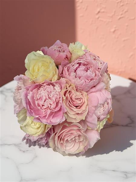 Mostly open and blooming beautifully the peony’s make this bouquet a popular choice.