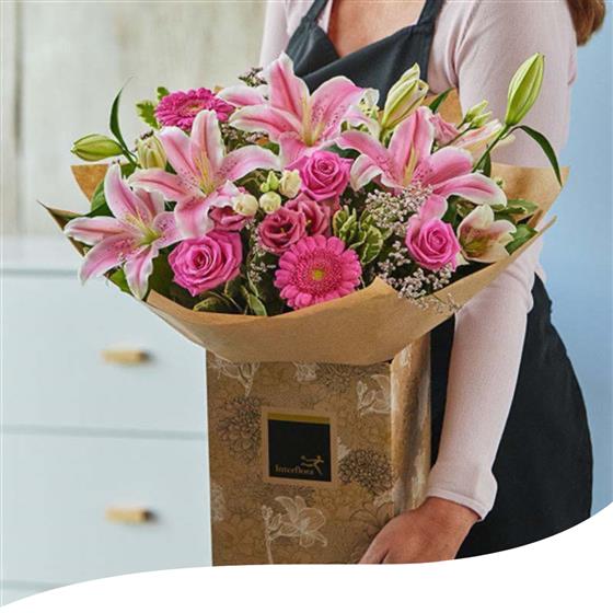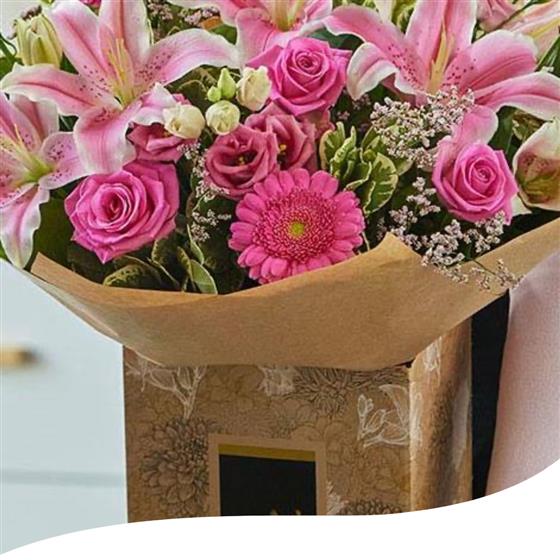 Featuring an abundance of lovely pink hues, this exquisite bouquet includes Roses and Lilies along with complementary seasonal blooms. Each arrangement is hand-tied with care ensuring a beautiful and personalised gift.