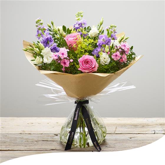Celebrate the essence of summer with our Pink Skies Hand-Tied Bouquet. This charming arrangement showcases a blend of pink and lilac summer blooms, creating a vibrant and refreshing display. Ideal for any occasion, this bouquet brings the cheerful colours and allure of summer right to your doorstep.