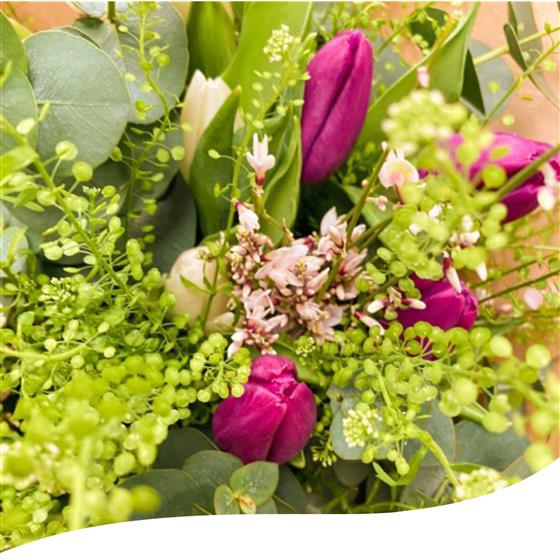 Our Purple & White Tulips with Eucalyptus bouquet, is a delightful blend of elegance and charm! Each stem is carefully selected to ensure vibrant hues and pristine petals, creating a captivating display that's sure to brighten any space.