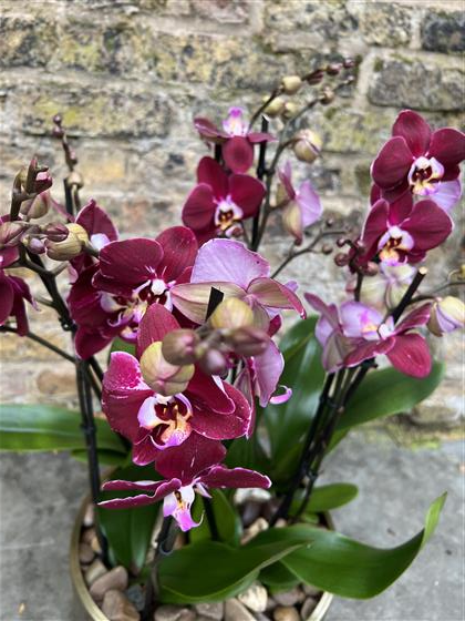 We use 2 stemmed orchid plants so this has minimum of 8 Stems of fresh purple Phalanopsis Orchid plants.