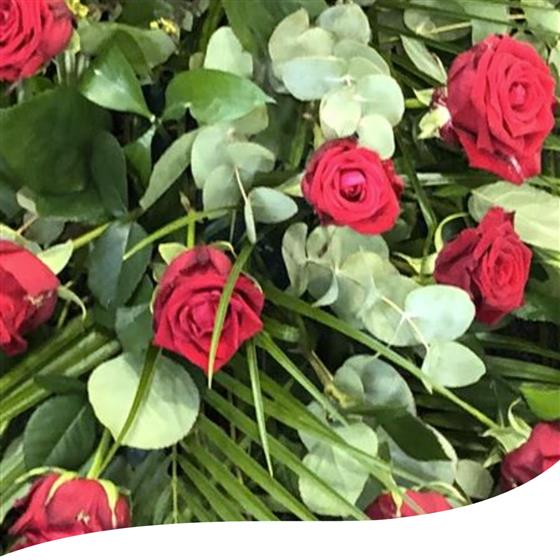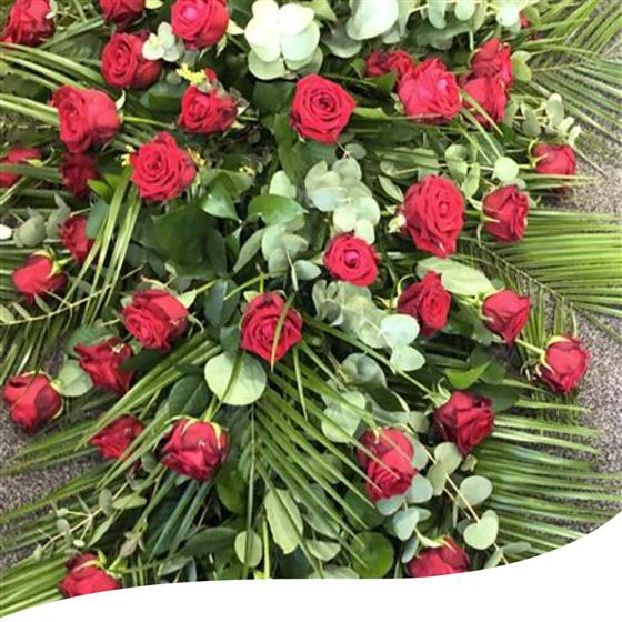 6 Foot Red Rose Coffin Spray. We will order the Red Roses in 3 days before to get them perfectly opened for the funeral.