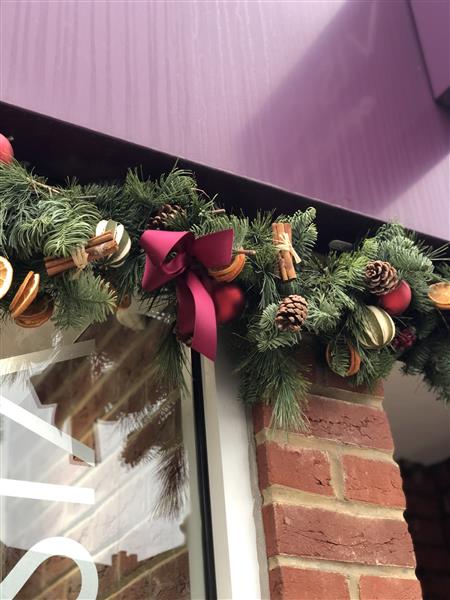 A bespoke 4M Garland made using the freshest Scots pine and Blue Pine. We mix the two to creat a beautiful base Garland and decorate with the finest decorations. Dried Limes, Oranges, Pine Cones, Cinnamon Sticks, Orange Slices, Ribbon Bows,