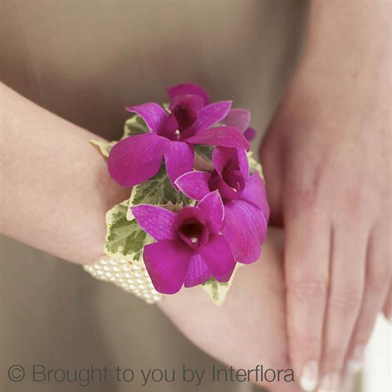 These richly coloured purple dendrobium orchids are a striking way to enhance that special dress. Orchids are a beautiful choice and this wrist corsage is particularly distinctive, adding natural glamour in breathtaking style.