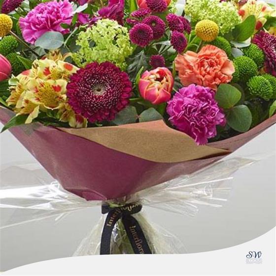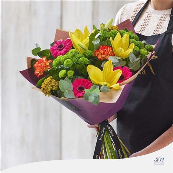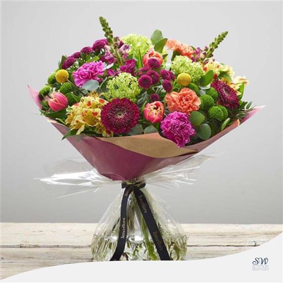 Introducing the Rose Free Sumptuous Brights Bouquet – a truly unique creation handcrafted by our skilled florists. Every design is one-of-a-kind, meticulously crafted using the freshest stems available on the day. While your gift may have a different appearance than the one pictured, rest assured it will be just as lovely, featuring a vibrant and sumptuous display of fresh, beautiful blooms.