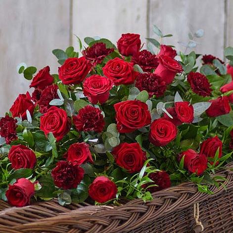 Rose and Carnation Casket Spray Red