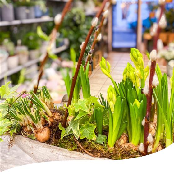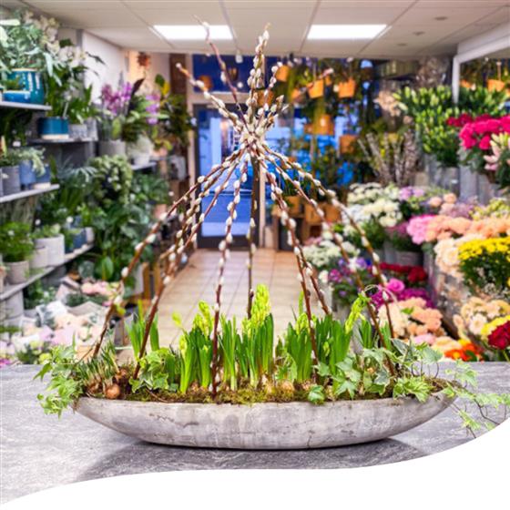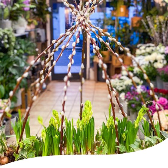This captivating Spring Arch, crafted from Pussy Willow, showcases a stunning blend of Crocus, Narcissus, Muscari and Hyacinth bulbs, accompanied by trailing Ivies. Our florists have carefully arranged it to enhance both your indoor and outdoor decor. Whether on your windowsill, tabletop or as a centrepiece, savour the joy of watching it grow throughout the season.