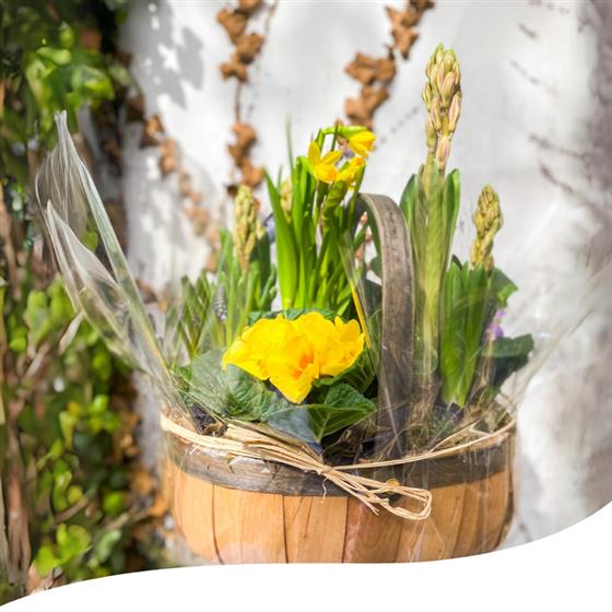 As the season of renewal unfolds, indulge in the vibrant hues and delicate fragrance of these classic blooms. The English Daffodil, with its golden-yellow petals and graceful demeanour, embodies the essence of springtime awakening. These exquisite plants are beautifully arranged in a charming basket, perfect for enhancing your home decor or surprising a loved one with a touch of natural elegance.