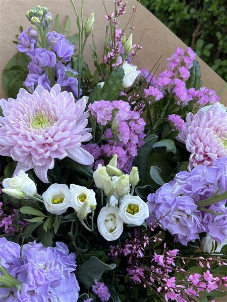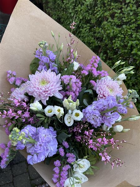 A standard bouquet hand crafted from seasonal blooms delivered to you or a loved one.