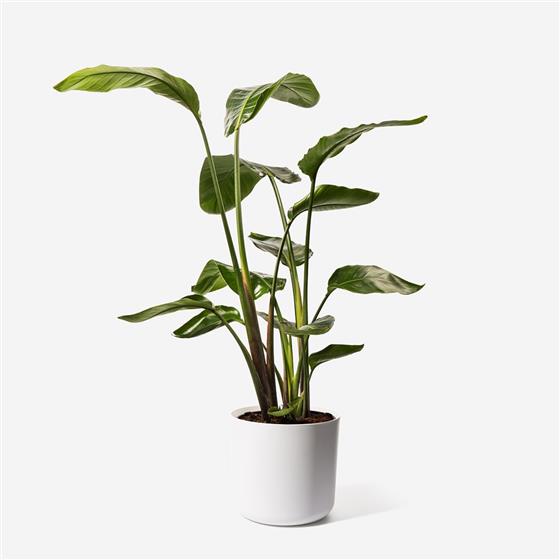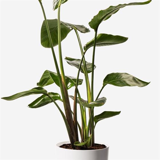 Strelitzia Nicolai is an ornamental evergreen with large, banana like broad leaves that grow up to 1.5m long. Best known as the Bird of Paradise, the name which is derived from its spiky white and blue flowers which resemble exotic birds perched on the end of the long flower stalks.