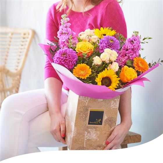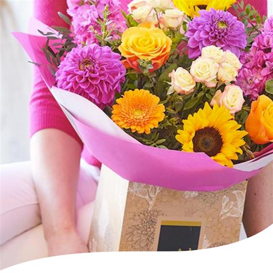 Expertly arranged by our skilled florists, our Summer Paradise Bouquet features the freshest and most vibrant blooms, handpicked to create a stunning display of summer’s beauty. From Sunflowers to Dahlias and yellow Roses, this hand-tied bouquet radiates warmth and joy, making it perfect for brightening up any room or as a thoughtful gift.