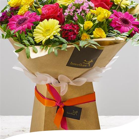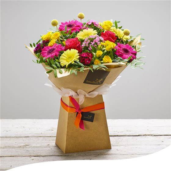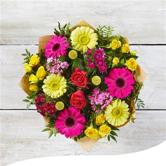 Bloom Selection: Includes Spray Roses, Gerberas, Craspedias, and other summer flowers for a lively and varied display.