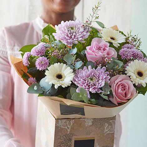 Each and every design is one-of-a-kind, created by pur artisan florist using the freshest stems available on the day so, whilst your gift will look different to the one pictured, it’ll still be just as lovely.