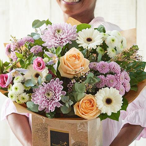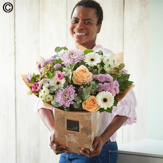 Each and every design is one-of-a-kind, created by pur artisan florist using the freshest stems available on the day so, whilst your gift will look different to the one pictured, it’ll still be just as lovely.