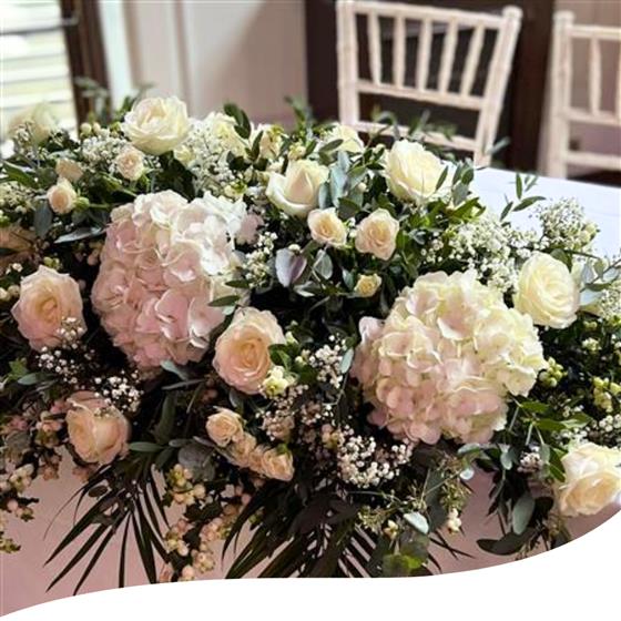 A top table arrangement using a nice mixture of flowers ready to match the wedding theme.