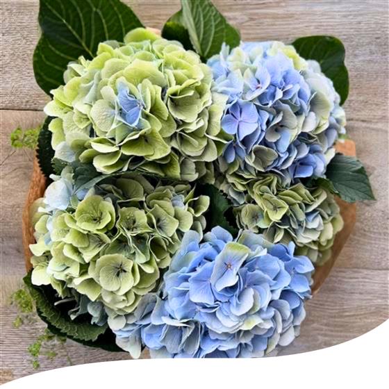 Please note that the colour of the Hydrangeas may vary slightly due to seasonal availability. For an even more stunning display, explore our larger options with additional Hydrangeas to enhance the bouquet's beauty. Celebrate any moment with the serene allure of our Sky Blue Hydrangea Bouquet.