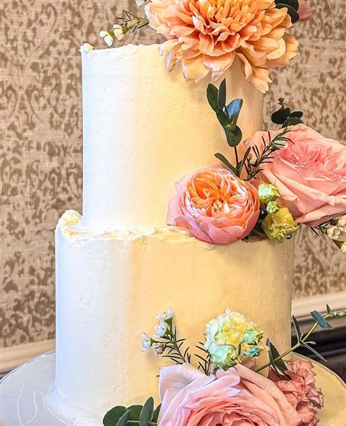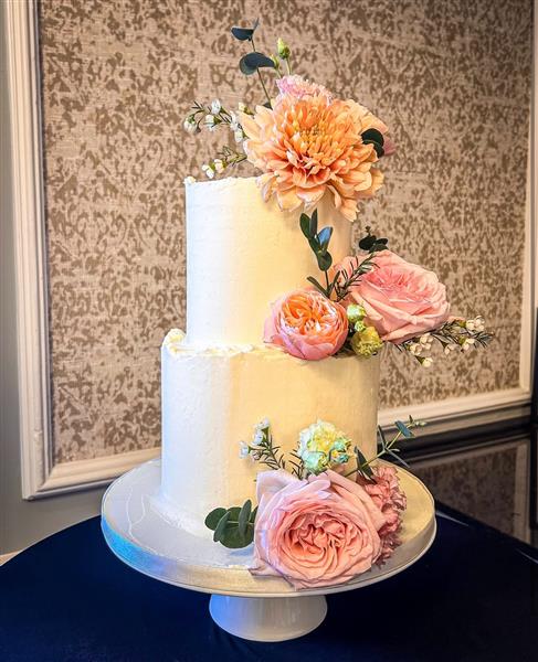 A selection of the most perfect flowers from the wedding theme, ready to be put onto the cake.