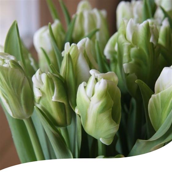 This bouquet is a customer favourite during the Tulip season, offering a breathtaking and timeless expression of natural beauty. Elevate your space with the elegance of our Green and White Parrot Tulip Bouquet, where each size brings an additional burst of 10 tulips to enhance the enchantment.