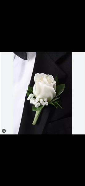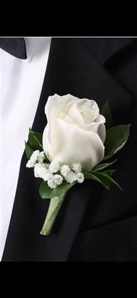 A White Rose And Gyp Buttonhole with a touch of foliage. Perfect for most suits and goes well during any season. Traditional Rose buttonhole and a popular choice.