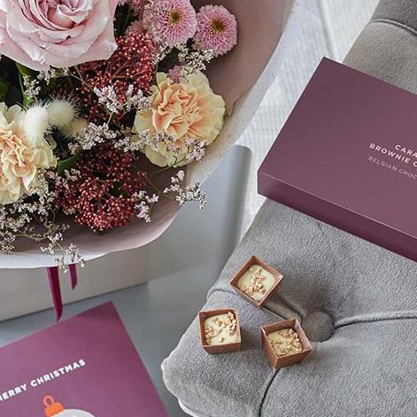 Our gorgeous festive gift box, made just for them by their local florist, plus scrummy chocolates and a beautiful festive card – what a very merry trio.