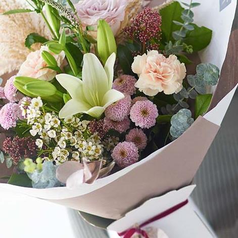 Choose a style to make it just right for them. This season bouquets in our classic style will feature blooms in plum and burgundy colours. You might also see reds and greens with highlights of soft pink and copper.