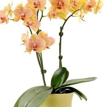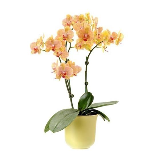 Featuring a twin stemmed orchid presented in a Matching ceramic pot.